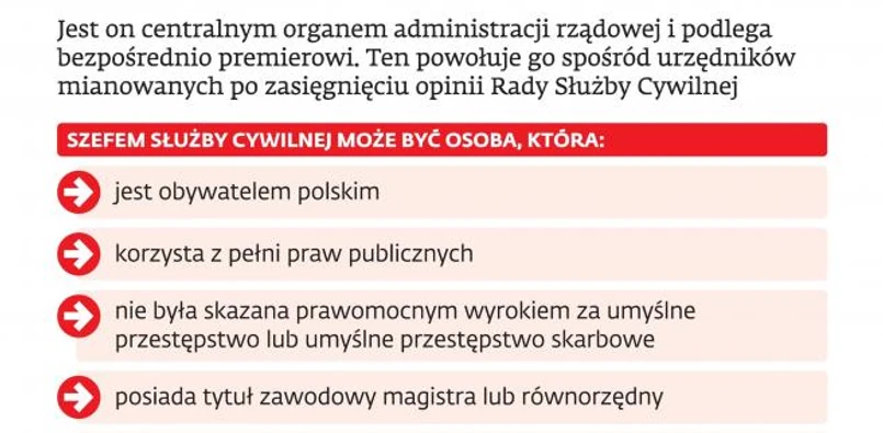 Od grudnia 2013 r. osoby zatrudnione w administracji rządowej nie mają szefa służby cywilnej. Poprzedni po ponad czterech latach został odwołany ze stanowiska. Na jego miejscu miała pojawić się osoba wskazana przez Jacka Cichockiego, szefa kancelarii premiera. W ostatniej chwili okazało się jednak, że kandydat nie jest urzędnikiem mianowanym. A to wymógł bezwzględny.