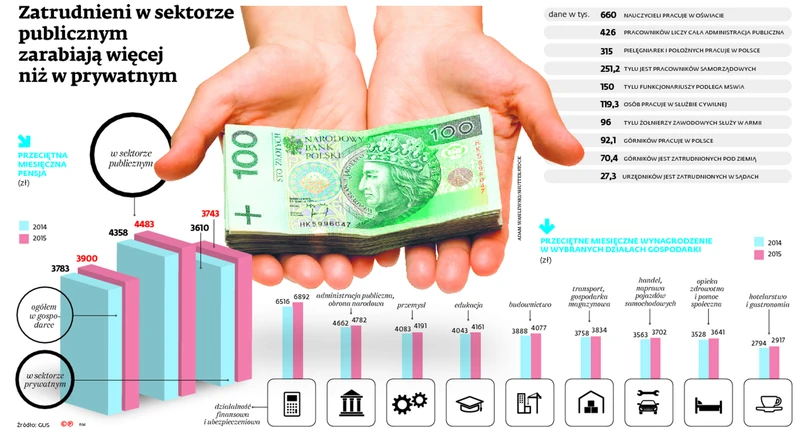 Mimo zamrożenia środków na wynagrodzenia płace w służbie cywilnej w ostatnich latach wzrastały i dziś wynoszą blisko 5 tys. zł. Nieco mniej zarabia się w samorządach. Tam według danych GUS przeciętna pensja wynosi 4350 zł i co roku wzrasta o blisko 100 zł. Płace w samorządach zależą już od wewnętrznej polityki kierowników urzędów, którzy za sprawą radnych mogą zdecydować się na ich wzrost lub na ich zamrożenie.