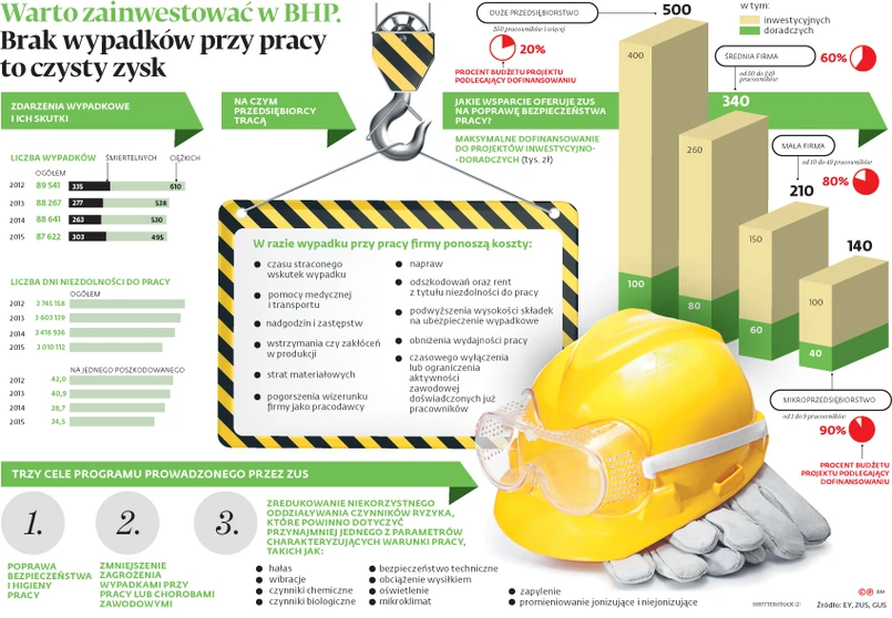 W 2015 r. w wyniku zdarzeń wypadkowych w miejscu zatrudnienia jeden poszkodowany był niezdolny do pracy średnio przez ok. 34 dni. Aby zmniejszyć ryzyko występowania wypadków przy pracy, firmy mogą obecnie inwestować w bezpieczeństwo, jednak często tego nie robią. Mimo że po pieniądze na ten cel wystarczy jedynie udać się do ZUS.