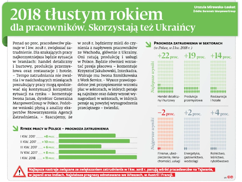 Większe zatrudnienie w 2018 roku. Skorzystają też Ukraińcy