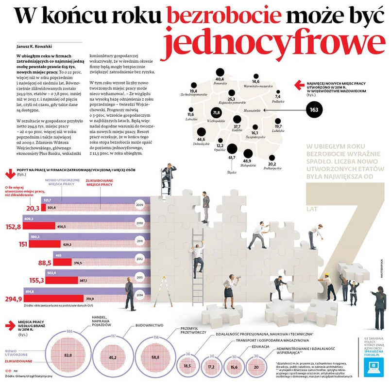 Najwięcej nowych miejsc pracy powstało w województwie mazowieckim.
