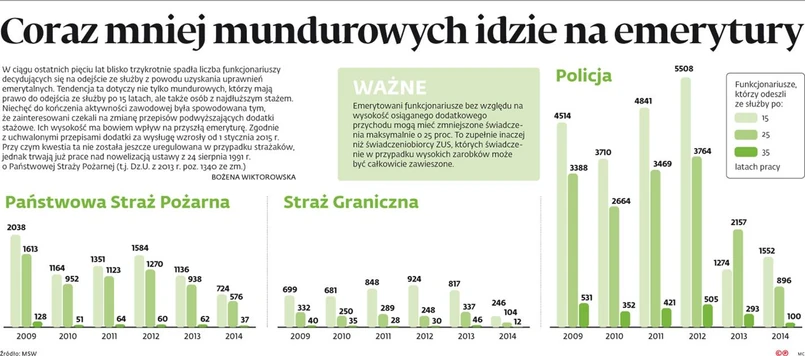 W ciągu ostatnich pięciu lat blisko trzykrotnie spadła liczba funkcjonariuszy decydujących się na odejście ze służby z powodu uzyskania uprawnień emerytalnych.