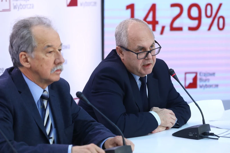 "A w stosunku do liczby uprawnionych najwięcej wyborców wzięło udział w głosowaniu w gminie Nowe Piekuty, powiat wysokomazowiecki, województwo podlaskie, otóż tam wzięło udział 34,03 proc. wyborców" - podał Hermeliński.