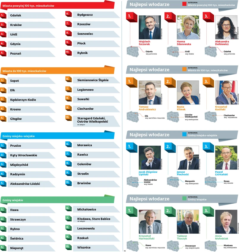 prezydent Gdyni, na drugim miejscu znalazła się prezydent Łodzi, natomiast trzecie miejsce przypadło prezydent Gdańska. Wysoka pozycja gmin szła zatem w parze z wysoką oceną włodarzy. Czwarte miejsce zajął prezydent Lublina, a piąte – Poznania.