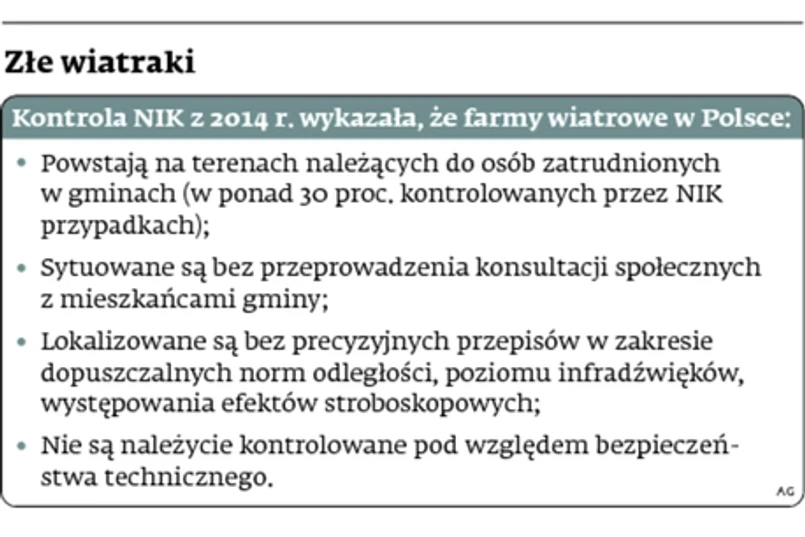 raport dotyczący lokalizacji i budowy lądowych farm wiatrowych. W jej ocenie sytuacja, w której 79 proc. skontrolowanych gmin posiada studia, plany czy prognozy oddziaływania inwestycji na środowisko współfinansowane przez inwestorów wiatrowych, jest nieprawidłowa.