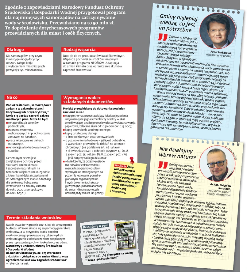 Zgodnie z zapowiedziami Narodowy Fundusz Ochrony Środowiska i Gospodarki Wodnej przygotował program dla najmniejszych samorządów na zatrzymanie wody w środowisku.