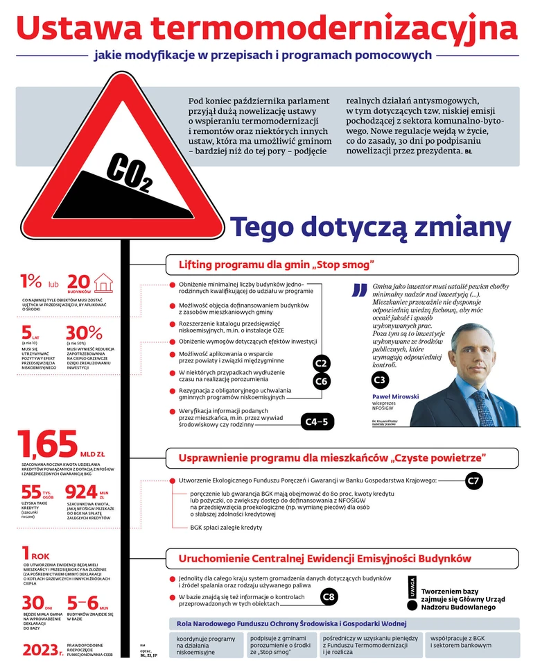 Pod koniec października parlament przyjął dużą nowelizacje ustawy o wspieraniu termomodernizacji i remontów oraz niektórych innych ustaw, która ma umożliwić gminom - bardziej niż do tej pory - podjęcie realnych działań atysmogowych.