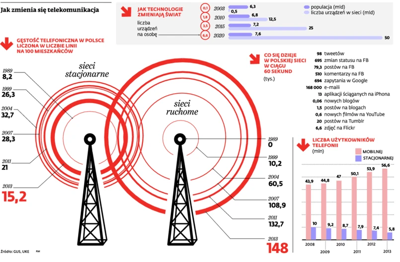 Z kolei internet stacjonarny pierwsze kroki stawiał w Polsce w 1991 r. 17 sierpnia odnotowano pierwszą korespondencję internetową pomiędzy Wydziałem Fizyki Uniwersytetu Warszawskiego a Centrum Komputerowym Uniwersytetu w Kopenhadze. – W kwietniu 1996 r. wszyscy poznaliśmy internet – TP jako pierwszy operator w Europie uruchomiła komutowany dostęp (dial-up). To był początek ery mobilności, w której dziś żyjemy – przypomina Wojciech Jabczyński, rzecznik Orange (następcy TP). „Wdzwaniany” internet miał prędkość 56 kb/s. Dziś mało kto decyduje się na zakup łącza wolniejszego niż 6 Mb/s, a dostawy internetu oferują prędkości przekraczające 500 Mb/s.
