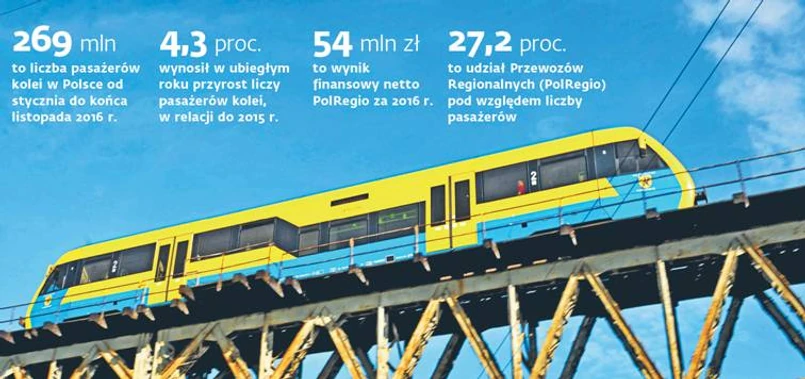 Przewozy Regionalne to największy przewoźnik kolejowy w Polsce. Od kilku dni nazywa się PolRegio, a jutro zaprezentuje 54 mln zł zysku netto za 2016 r. (od lat po raz pierwszy na plusie). Jak dowiedział się DGP, tego samego dnia podpisze porozumienie w sprawie zintegrowanego biletu z siedmioma spółkami PKS z różnych regionów Polski. To umożliwi lepsze połączenia np. miast wojewódzkich z powiatowymi. I wpisuje się w strategię wzmacniania Polski lokalnej lansowaną przez PiS.