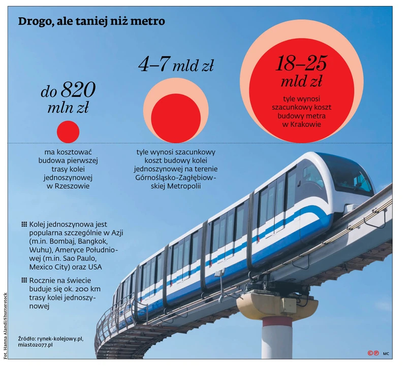 – Takie rozwiązania wymagają jednak dużej liczby pasażerów, sprawdzają się w miastach o bardzo dużym zagęszczeniu ludności. Czy sprawdziłyby się w Polsce? Mam wątpliwości, ale bez dokładnej analizy tego nie wykluczam. Jeżeli jednak nie ma tego w siedmiu naszych milionowych aglomeracjach, to czy sprawdzi się w 300-tysięcznej aglomeracji Rzeszowa? – zastanawia się naukowiec. Zwraca przy tym uwagę, że kolej jednoszynowa to rozwiązanie kilkukrotnie droższe np. od tramwajów. Do tego ludzie muszą dostać się na nadziemne perony, więc potrzebne będą windy i schody.