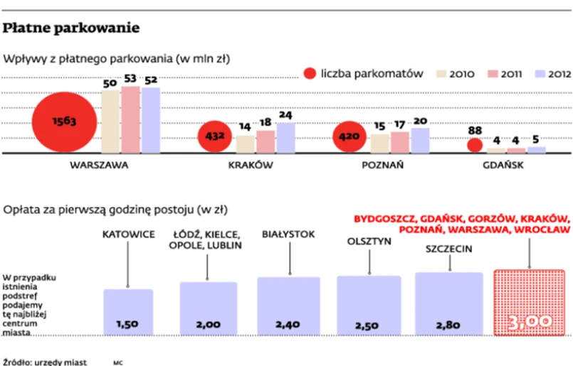 Wszyscy odpytani przez DGP prezydenci miast podkreślają, że celem opłat jest wymuszenie rotacji miejsc parkingowych. Ale podwyżka nabije budżety miast. W 2012 r. wpływy z parkomatów wyniosły w Warszawie 52 mln zł. Przychody parkingowe Krakowa w tym okresie to 24 mln zł, a Poznania – 20 mln zł.