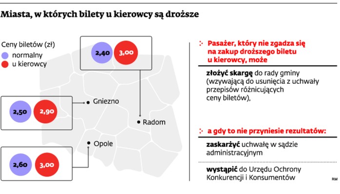 Miasta, w których bilety u kierowcy są droższe / DGP