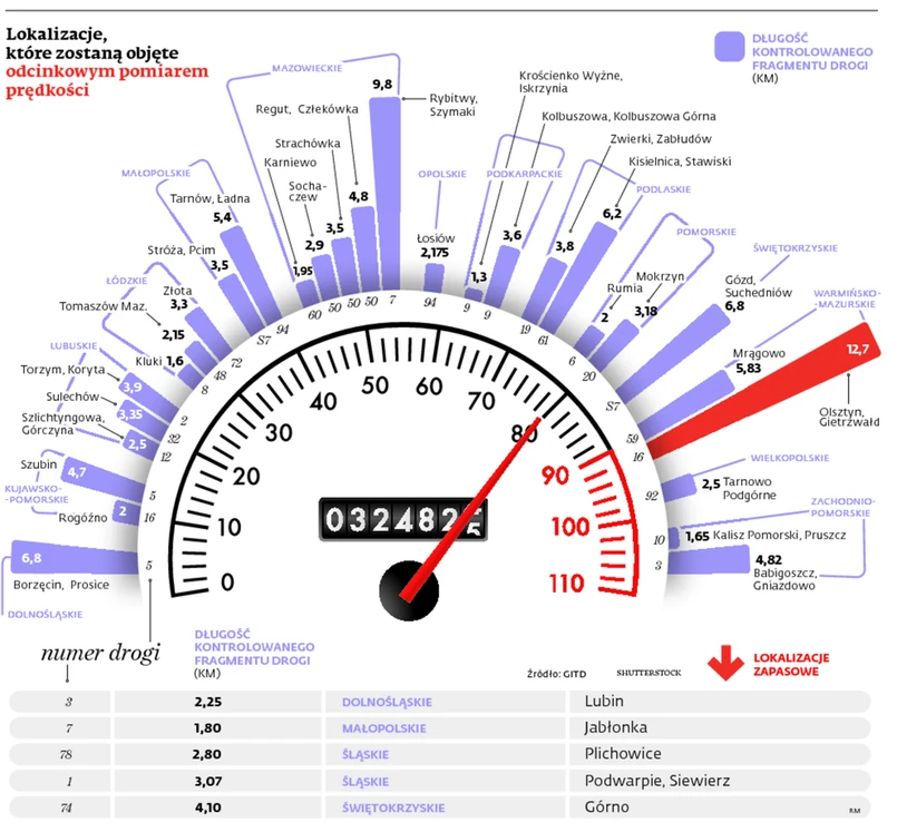 Tłumaczy też, że gdy przy drodze ustawiany jest zwykły fotoradar stacjonarny, to do legalizacji wykorzystuje się m.in. odpowiednio skalibrowane bramki (fotokomórki) TAG Heuera mierzące prędkość średnią na odcinku do maksymalnie 80 m (a najlepiej na odcinku zaledwie 10 m). Wyniki te porównuje się następnie z pomiarem fotoradaru. W przypadku systemów odcinkowego pomiaru prędkości w grę wchodzą odcinki liczące nawet po kilkanaście kilometrów – najdłuższy, niemal 13-km, powstanie na drodze nr 16 między Olsztynem a Gietrzwałdem.