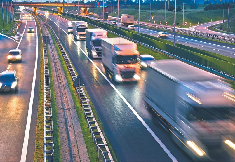 transport drogowy i osiem razy mniej zanieczyszczeń.
