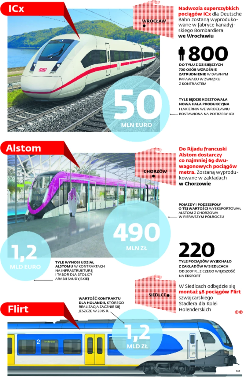 Bombardier, Alstom i Stadler otworzyły u nas zakłady skuszone niskimi kosztami pracy i wykształconą kadrą. Dzisiaj większość produkcji sprzedają za granicę