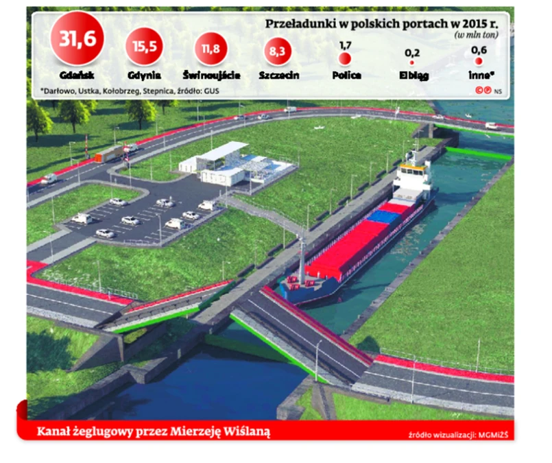 Ta budowa to jak los wygrany na loterii dla Elbląga, dziś praktycznie odciętego od Bałtyku. W 2015 r. port w tym mieście przeładował tylko 206 tys. ton. To prawie o połowę mniej niż rok wcześniej i 160 razy mniej niż Gdańsk. – Jesteśmy uzależnieni od współpracy z obwodem kaliningradzkim, która jest trudna – tłumaczy Arkadiusz Zgliński, dyrektor portu. Zdarza się, że Rosjanie utrudniają korzystanie z Zalewu Wiślanego. Na pozwolenie wpłynięcia przez Cieśninę Pilawską – kontrolowany przez Rosjan łącznik z Bałtykiem – trzeba czekać prawie tydzień. A zdolności przeładunkowe dobrze skomunikowanego kolejowo Elbląga to 1,2–1,5 mln ton rocznie.