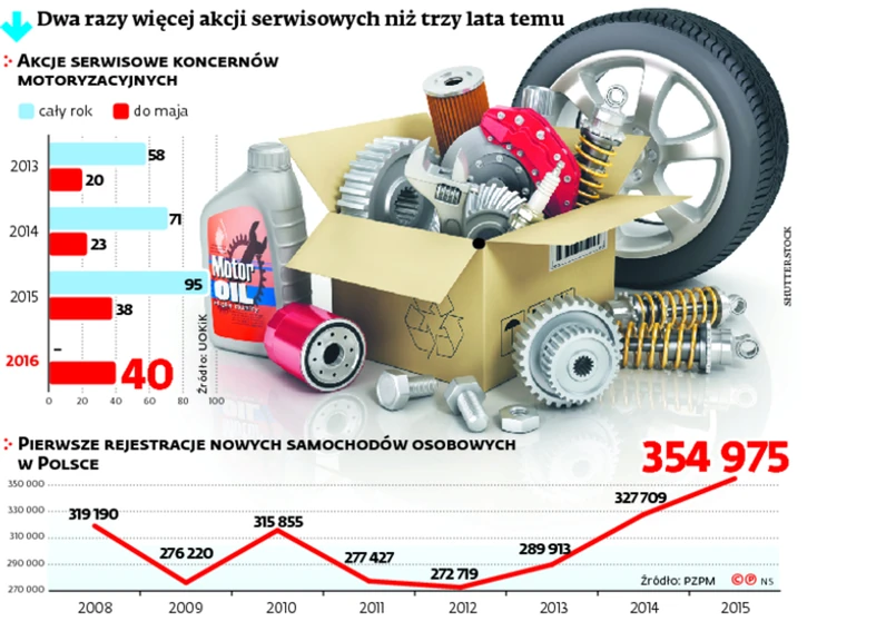 Od stycznia do maja tego roku producenci zgłosili do UOKiK wady w ponad 50 tys. pojazdów. W ciągu pierwszych pięciu miesięcy tego roku koncerny motoryzacyjne zgłosiły do Urzędu Ochrony Konkurencji i Konsumentów już 40 akcji serwisowych. To o dwie więcej niż w podobnym okresie ubiegłego roku, ale już dwa razy więcej niż w 2013 r.