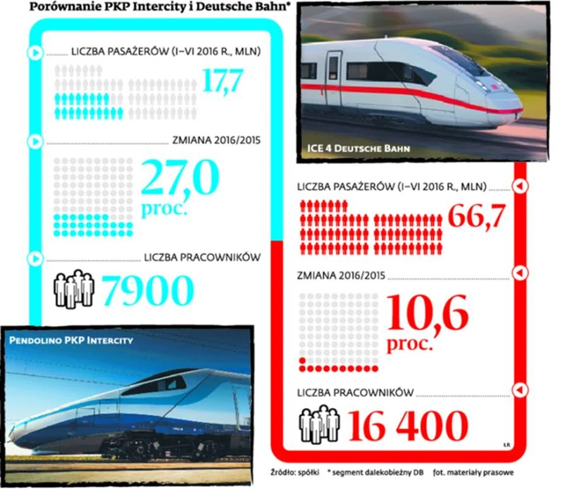 Do wożenia pasażerów w Polsce będą gotowi Niemcy. W megakontrakcie na pociągi ICE 4, które zostały zamówione przez DB, część jest w wersji wielosystemowej. Czyli będą mogły jeździć nie tylko pod niemieckim napięciem kolejowym 15 tys. woltów prądu zmiennego, lecz także 3 tys. woltów prądu stałego – jak w Polsce. Kontrakt jest realizowany w fabrykach Siemensa i Bombardiera (m.in. we Wrocławiu). Koleje Niemieckie zamówiły na razie 130 pociągów. Docelowo zlecenie ma urosnąć do 300 sztuk. Z DB też nie otrzymaliśmy wczoraj odpowiedzi na pytanie, ile z nich będzie zdolnych pojechać do Polski.