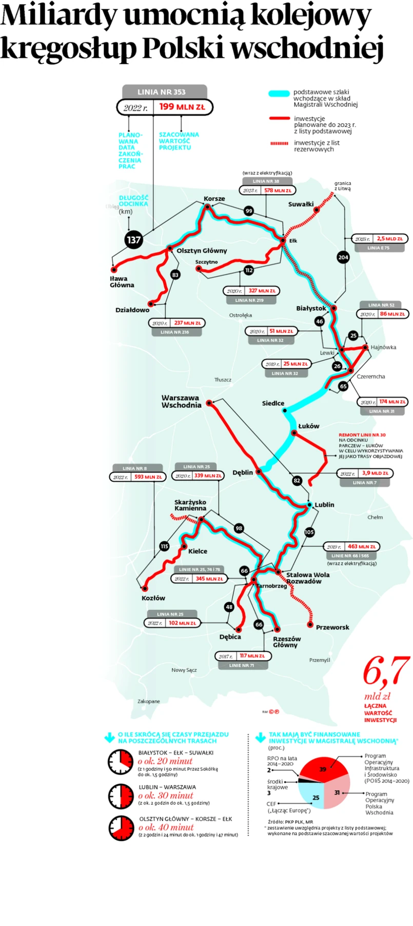 dofinansowanie i ma kosztować ok. 6,7 mld zł (środki na nią pójdą m.in. z programów: Infrastruktura i Środowisko, Polska Wschodnia oraz CEF „Łącząc Europę”.