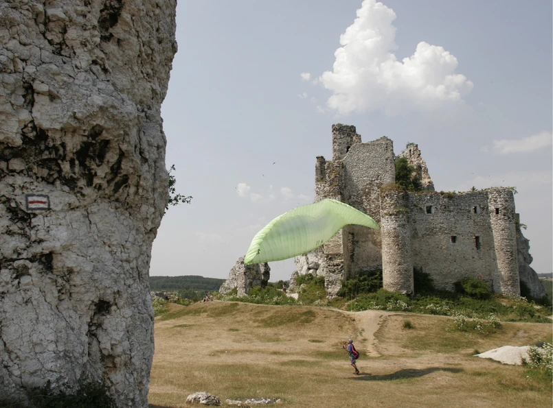 1/8 1. Zamek królewski Mirów. Mirów to zamek, który powstał za panowania Kazimierza Wielkiego. Od czasów potopu szwedzkiego budowla stopniowo podupadała, a w ostatnich latach jego nowi właściciele stworzyli plany jego odbudowy. Jest to bez wątpienia jeden z najpiękniejszych obiektów na szlaku Orlich Gniazd. Leżąca na wzniesieniu, monumentalna bryła zamku, przywodząca niektórym na myśl okręt, pomimo pozostawania przez wiele lat w ruinie robi spore wrażenie. Mirowska twierdza stanowi jedną z najstarszych budowli obronnych Wyżyny Krakowsko-Częstochowskiej. Wiemy, iż murowana strażnica powstała tu około połowy XIV wieku, w czasach Kazimierza Wielkiego. Najprawdopodobniej przed zamku istniał na tym miejscu drewniany gródek, który miał zabezpieczać granice kraju przed najazdami Czechów.