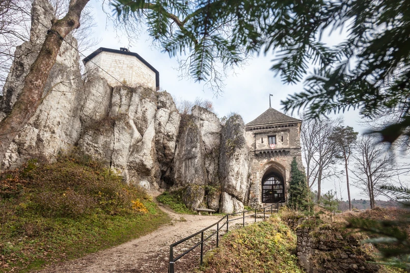 5/8 5. Zamek Ojców. Powstanie zamku jest związane z działalnością fortyfikacyjną króla Kazimierza Wielkiego w 2 poł. XIV wieku. Jego budowę źródła historyczne pozwalają odnieść do okresu pomiędzy 1354 a 1370 rokiem. Badania wykopaliskowe nie potwierdzają jak dotąd romantycznej legendy, wedle której zamek powstać miał na ruinach wcześniejszego grodu. Po wzniesieniu warowni przez króla Kazimierza Wielkiego, jego rolą było zabezpieczenie Krakowa przed Luksemburczykami i ochrona kupców podążających szlakiem handlowym prowadzącym z Krakowa na Śląsk. Stanowił także ośrodek administracyjny królewskich dóbr ziemskich, skupionych w starostwie ojcowskim. Król nazwał zamek Ociec u Skały, upamiętniając w ten sposób tułaczkę swego ojca, Władysława Łokietka. Prace konserwatorskie i badawcze na szerszą skalę na zamku prowadzono w 1991 r. Objęły one dziedziniec zamku oraz wschodni fragment części mieszkalnej zamku. W latach 2017-2019 przeprowadzono gruntowną konserwację, odchodząc od powszechnej w ostatnich latach na obszarze Jury Krakowsko-Częstochowskiej, rekonstrukcji zamku. Skupiono się na zachowaniu oryginalnych elementów oraz stworzeniu nowej ekspozycji w wieży (dostępnej od ok. połowy 2019 r.) oraz tablic informacyjnych. Z dawnej budowli zamkowej pozostało do dziś tylko malownicze ruiny, na które składają się resztki murów obronnych i części mieszkalnych, wieża i brama wjazdowa. Z ruin zamku można obejrzeć ładną panoramę Doliny Prądnika.