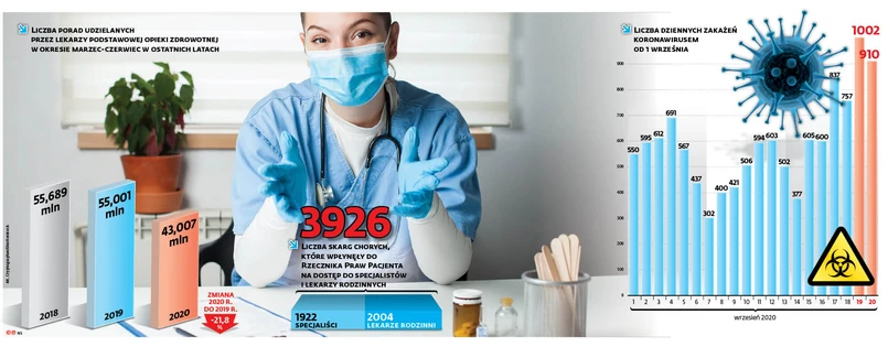 Pytanie dlaczego? Lekarze są ci sami co rok temu. Wtedy ich praca była dobrze oceniana. Owszem, udzielanych jest dużo teleporad i pewnie wiele osób jest tym zmęczonych. Ostatnio zwiększyła się liczba pacjentów chcących się umówić na konsultację. Są wśród nich osoby, które wcześniej bały się przychodzić do lekarza z powodu koronawirusa – to generuje duży ruch na łączach. W przychodniach jest też coraz więcej wizyt osobistych. Zaczyna się sezon przeziębieniowy, pacjenci z objawami sugerującymi zakażenie koronawirusem muszą być przyjmowani osobiście, to zabiera dużo czasu (konieczność dezynfekcji po każdym pacjencie, ograniczanie kontaktowania się chorych). No i wizyty związane z wystawianiem zaświadczeń dla dzieci, że są zdrowe… Zaczyna brakować mocy przerobowych.