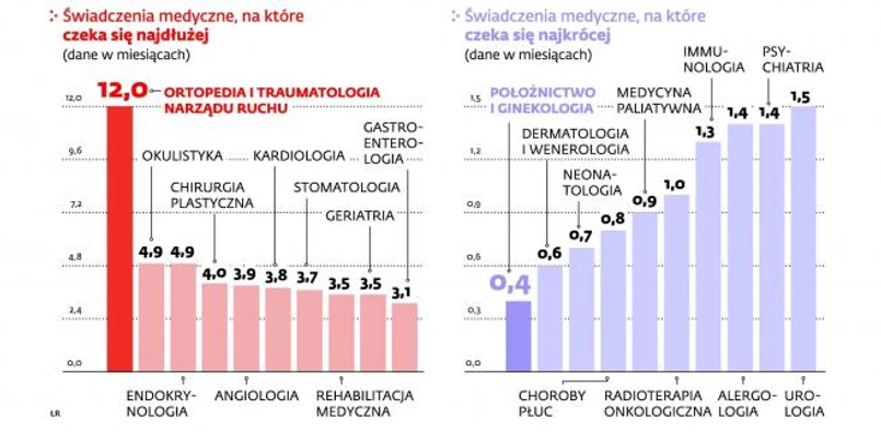 Najtrudniej dostać się do ortopedy. W kolejce trzeba spędzić około roku. Prawie 5 miesięcy czeka się na wizytę u endokrynologa. Na pediatrę – półtora miesiąca.