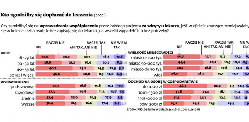 Badani byli pytani, czy zgodziliby się na podniesienie składki zdrowotnej oraz na współpłacenie przy wizytach lekarskich, jeżeli dzięki temu skróciłoby to czas oczekiwania do lekarza.