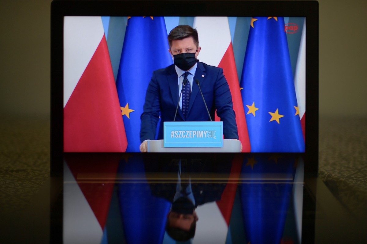 "Od poniedziałku będziemy rozpoczynali rejestrację każdego dnia dwóch roczników" - powiedział Michał Dworczyk. - "7,8 i 9 maja będziemy uruchamiali po trzy roczniki. To są najmłodsi Polacy, którzy mogą się szczepić. Od 9 maja wszyscy będą mieli e-skierowania i będą się mogli rejestrować na konkretne terminy szczepień."
