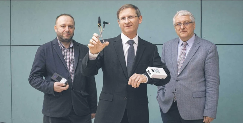 dr inż. Adam Bujnowski i prof. dr hab. Jacek Zieliński z Gdańskiego Uniwersytetu Medycznego i prof. dr hab. Inż. Jerzy Wtorek z Politechniki Gdańskiej