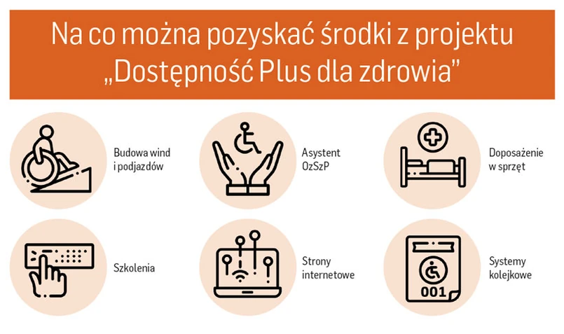 Celem projektu „Dostępność Plus dla zdrowia” jest dostosowanie szpitali oraz placówek POZ, do wymagań osób ze szczególnymi potrzebami, wśród których należy wymienić m.in. osoby z niepełnosprawnościami, osoby starsze, kobiety w ciąży a nawet dzieci. Udział w projekcie daje uczestniczącym w nim ośrodkom szansę na rozwój, modernizację i przede wszystkim stworzenie przyjaznej przestrzeni dla pacjentów, zwłaszcza tych ze szczególnymi potrzebami. Dostosowanie – czyli wprowadzenie udogodnień, obejmuje trzy zasadnicze obszary: architektoniczny, cyfrowy oraz informacyjno – komunikacyjny. Przystąpienie do projektu „Dostępność Plus dla zdrowia” oznacza dla placówki możliwość pozyskania środków finansowych m.in. na budowę wind i podjazdów, odpowiednie oznaczenie i oświetlenie pomieszczeń, doposażenie punktów rejestracyjnych i gabinetów lekarskich w dodatkowy sprzęt. Wsparcie udzielone w projekcie może być też przeznaczone na przygotowanie miejsc parkingowych dla osób ze szczególnymi potrzebami. Przystąpienie do projektu umożliwia udział w szkoleniach dotyczących komunikacji z osobami ze szczególnymi potrzebami. Organizatorem tych szkoleń jest Ministerstwo Zdrowia.
