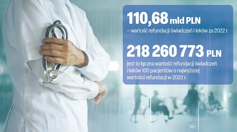 Na świadczenia medyczne i leki, które można dopasować do konkretnego pacjenta lub świadczenia, NFZ wydał w 2022 roku ponad 110 mld zł. To o przeszło 27 mld zł więcej niż w 2021 r. Na leczenie 100 „najdroższych” pacjentów przeznaczono 218 mln zł. W 2015 r. było to niecałe 128 mln zł.